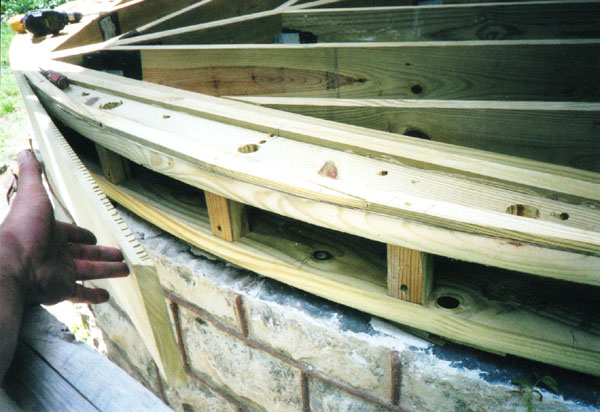 The new side porch has a flat roof with a curved Mansard edge - some challenging framing on this one.