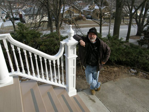 The new stair railing and custom newel post - both matching the original builder's plans. The newel post is 6 feet tall and made primarily of PVC - it will never rot.