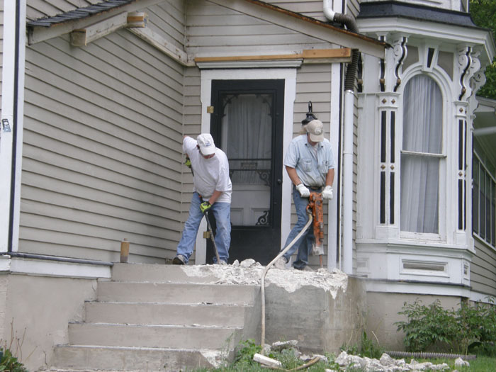The homeowners wanted to be involved with the project as much as possible and had friends and neighbors to help with the demolition of the existing and inappropriate concrete side porch.