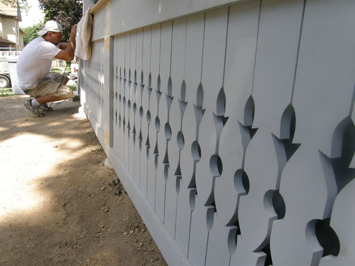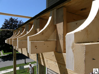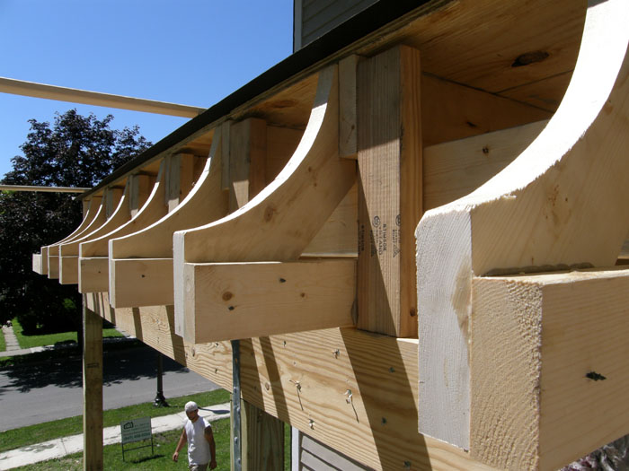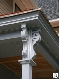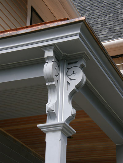 We produced the new column brackets for the new side porch using, as a template, existing brackets on the bay window on this house.