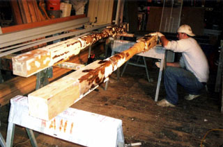 The new custom porch railings get installed inside our winter "tent". With a kerosene heater, we can actually stay quite warm.